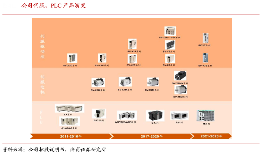 經典案例:根據公司招股說明書、浙商證券研究所等綜合資訊表明,禾川科技公司主力產品每年穩步更新迭代,多產品系列滿足不同控制需求。公司目前已經形成 Y 系列高階伺服、X5 系列進階型伺服、X3E 通用型伺服、X2 E 簡易型伺服、J 系列一體機等伺服驅動器,覆蓋客戶差異化需求。