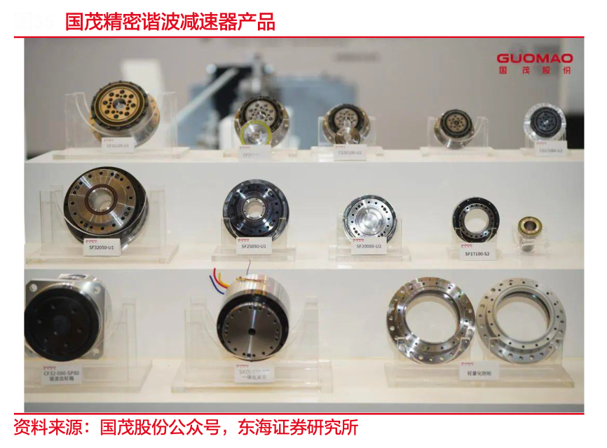 經典案例:根據國茂股份公眾號、東海證券研究所等綜合資訊表明,2023年國茂精密完成生產基地搬遷工作,諧波減速器產品研發推廣有序推進,目前產品速比可按需定制。諧波減速器在人形機器人領域應用廣闊,以 Optimus 為 例,所有旋轉執行器均需配備諧波減速器。